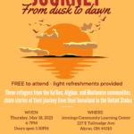 Join ASIA and Fair Housing Akron in JOURNEY: From Dusk to Dawn and listen to the life stories of three speakers from Akron’s refugee communities! On Thursday, May 18th, we are hosting a panel for members of the Ka’Ren, Nepali-speaking, and Afghan communities to share their journey from their homeland to the US. The event is free and light refreshments are provided. Attendance is free. Doors open at 5:30PM.